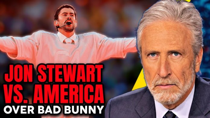 news1todaysnewsW1 Bad Bunny BAD RATINGS Trigger Jon Stewart to LASH OUT at Americans! More Super Bowl FALLOUT! By La Daily - February 13, 2026 0 19 FacebookTwitterPinterestWhatsApp IMAGE ABOVE FROM VIDEO BELOW TOP COMMENTS FROM VIDEO BELOW Having two halftime shows is divisive, but having two national anthems isn’t? Have them read all of the lyrics on their shows.